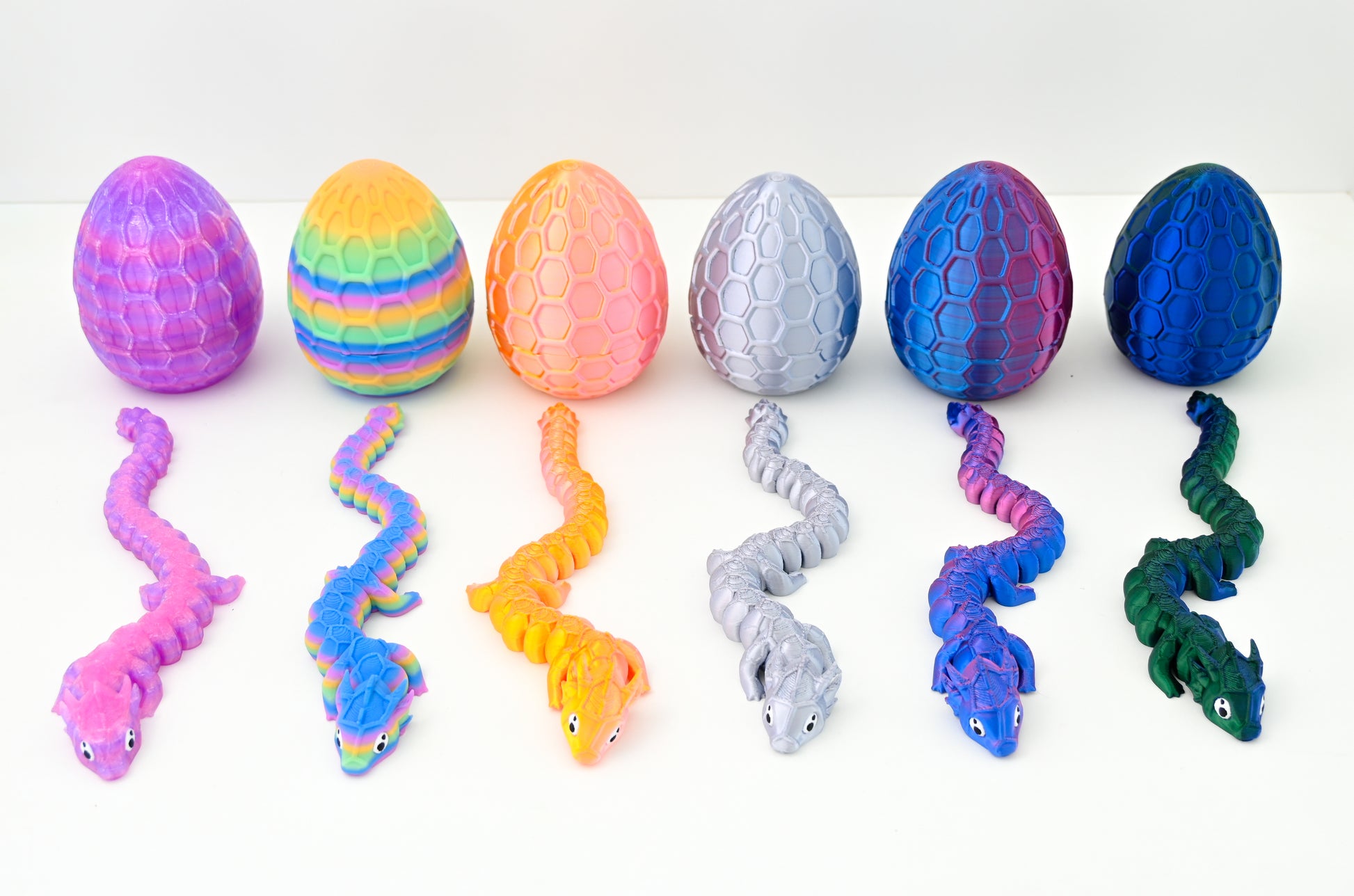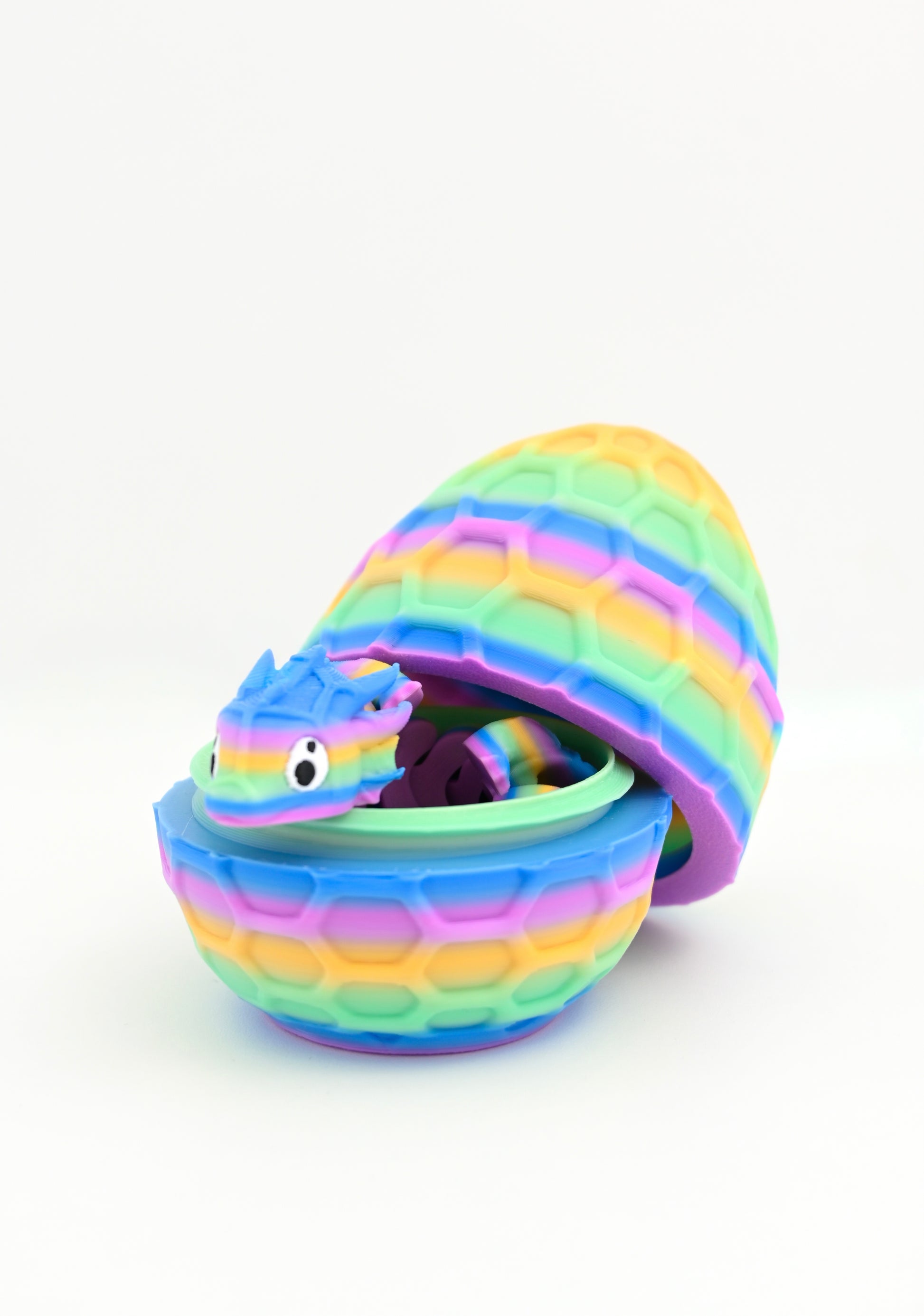 Ogni uovo è realizzato in stampa 3D con finitura dettagliata e texture squamata effetto realistico, disponibile in 6 colorazioni abbinate ai draghi della collezione.